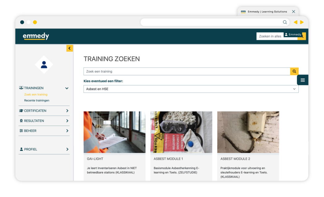 Met Emmedy Learn bouw je eenvoudig en geheel op maat trainingen die je vervolgens kunt aanbieden aan cursisten. Hierdoor wordt de specifieke kennis van cursisten verrijkt, waardoor ze beter en specifieke specialistische werkzaamheden kunnen uitvoeren.